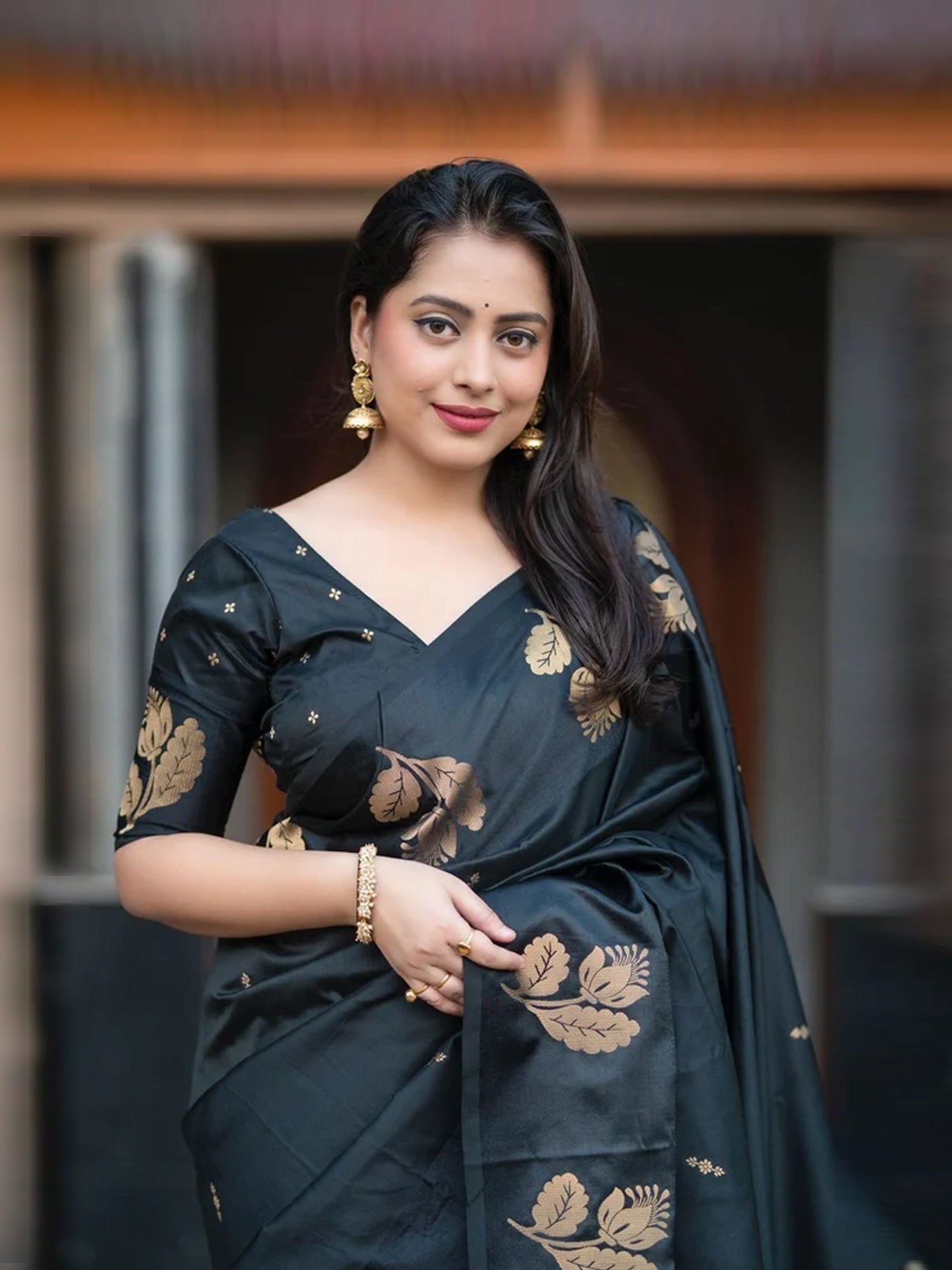 This saree combines traditional artistry with premium fabric quality, ensuring both comfort and a graceful drape.
