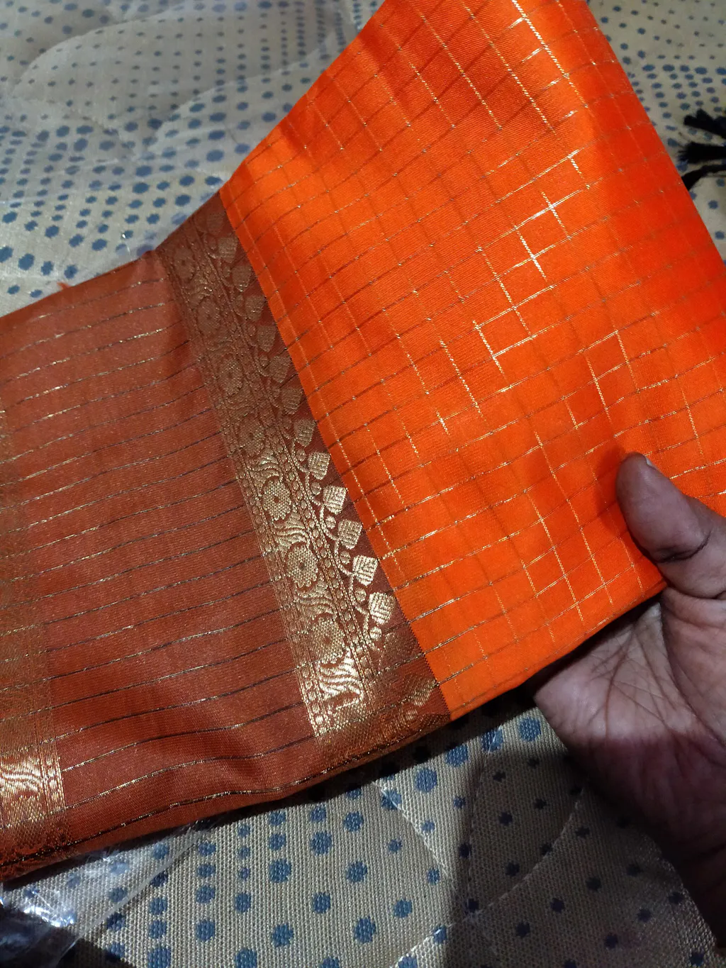 Rust Orange Checked Saree RG30